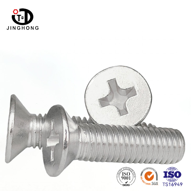 De aluminiumlegering kruist de platte kopschroefkop perfect in het verbonden stuk, met een vlak oppervlak na de installatie. De kop komt overeen met het conische oppervlak van de tegenboor om radiale voorspanning te genereren, en met de koppelregeling van de kruisgroef kan het een gesloten toestand onder trillingsomgeving behouden. Hidden Design maakt het uiterlijk van het product beknopt, en in velden zoals het bouwen van gordijnwanden en high-end meubels, kan het een naadloos visueel effect bereiken.