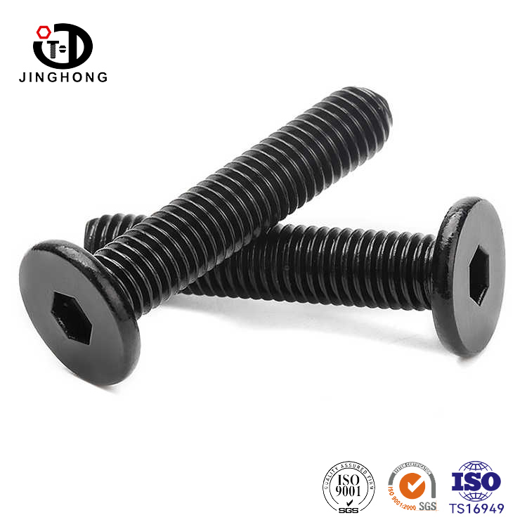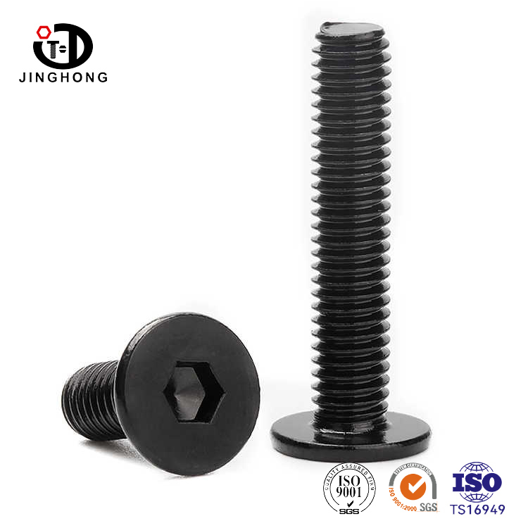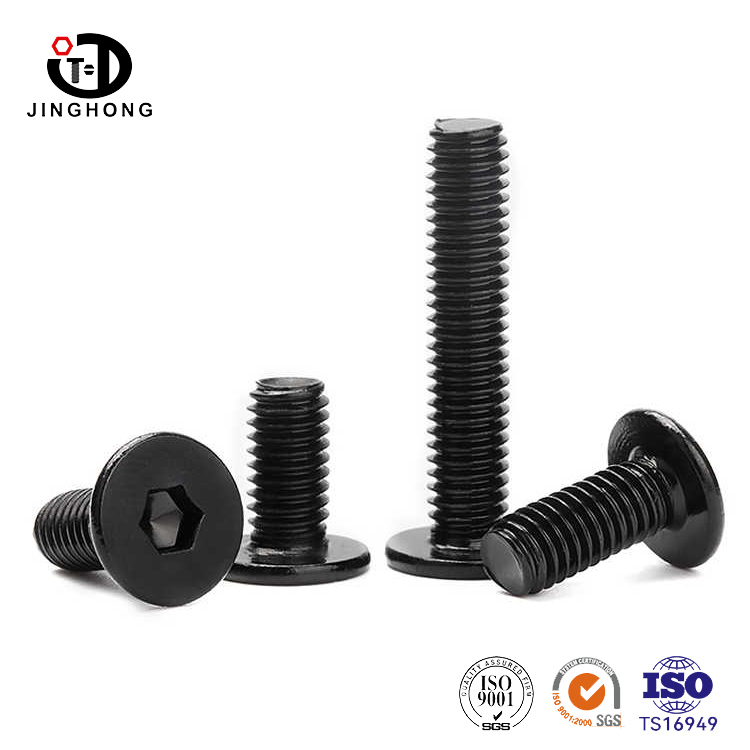 Het oppervlak van de schroef heeft een speciaal zwart behandelingsproces ondergaan, dat niet alleen het product schenkt met een diepgaande en mysterieuze visuele schoonheid, maar ook de bruikbaarheid ervan verbetert. Het zwarte oppervlak kan licht absorberen, reflectie verminderen en de schroef ingehouden houden zonder de kwaliteit in verschillende omgevingen te verliezen. Bovendien kan zwarte behandeling de slijtvastheid en corrosieweerstand van schroeven verbeteren, waardoor hun levensduur en stabiliteit verder wordt verbeterd.