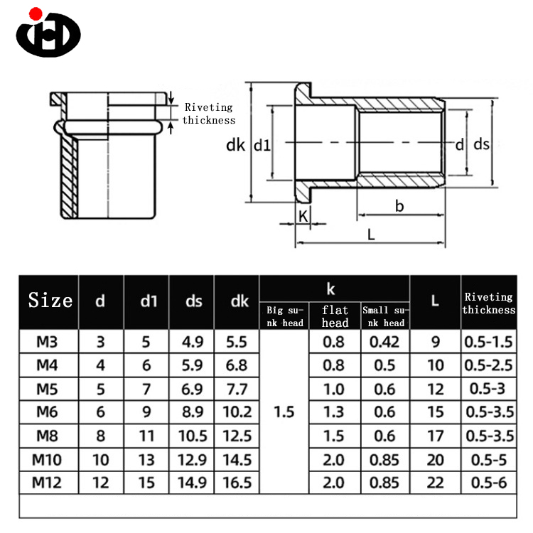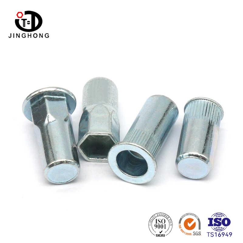 Blind gat -schroefdraadklinknoot is een geklonken bevestigingsmiddel met een gesloten uiteinde en een schroefdraadopening aan de andere kant. Het combineert meeslepende technologie en de functie van moeren, die een stevig verband tussen onderdelen kunnen bereiken zonder vanaf de achterkant te worden bediend. Dit ontwerp vereenvoudigt niet alleen het assemblageproces, maar verbetert ook de verbindingsefficiëntie en de algehele sterkte van de structuur aanzienlijk.