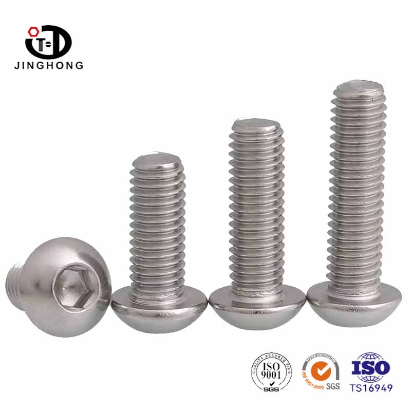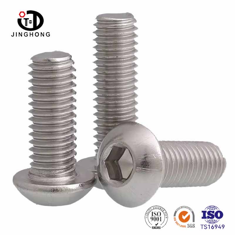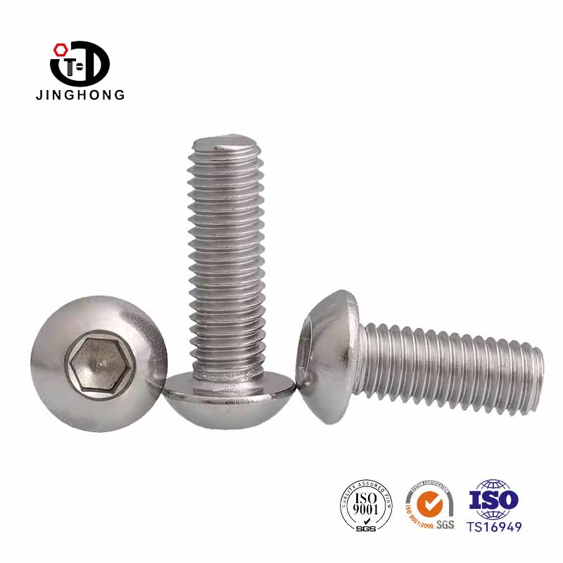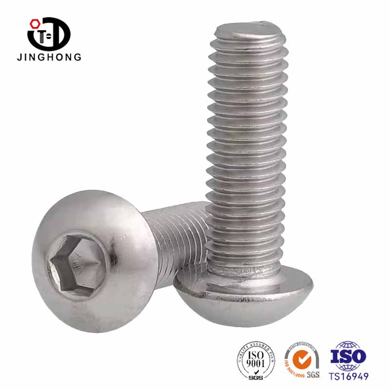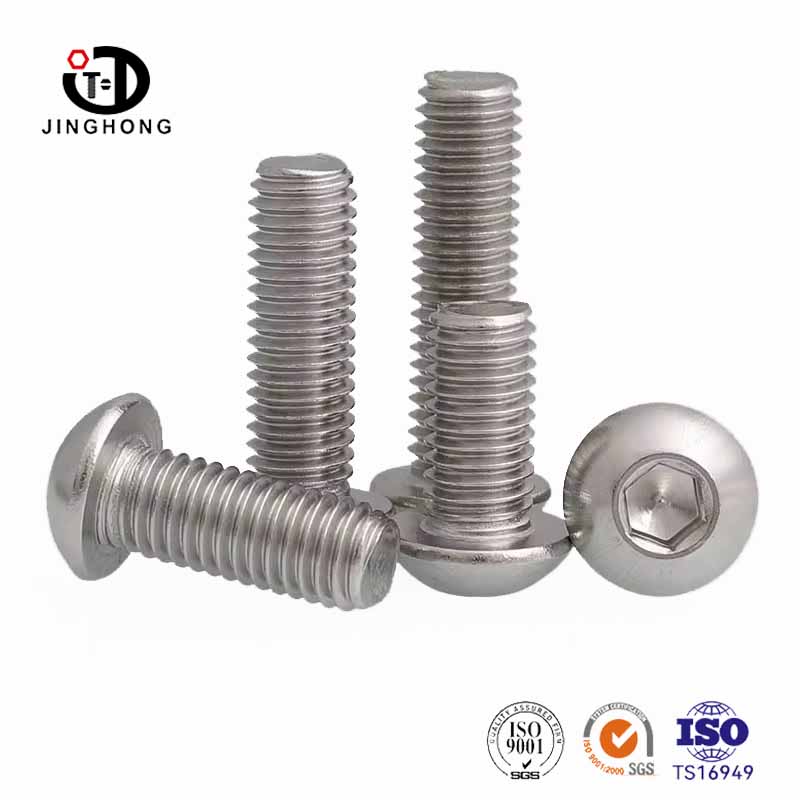 De knopkopbuskapschroef combineert een halfcirkelvormige kop met een zeshoekige aandrijfsleuf, waardoor het installatie- en demontageproces handig en efficiënt is en wordt veel gebruikt in verschillende industriële en mechanische velden.