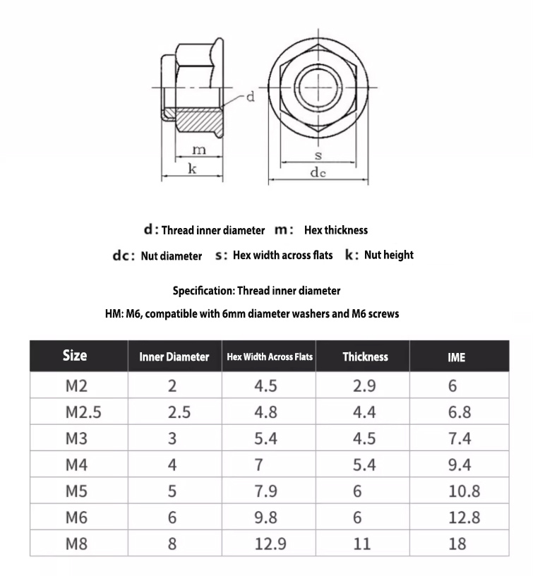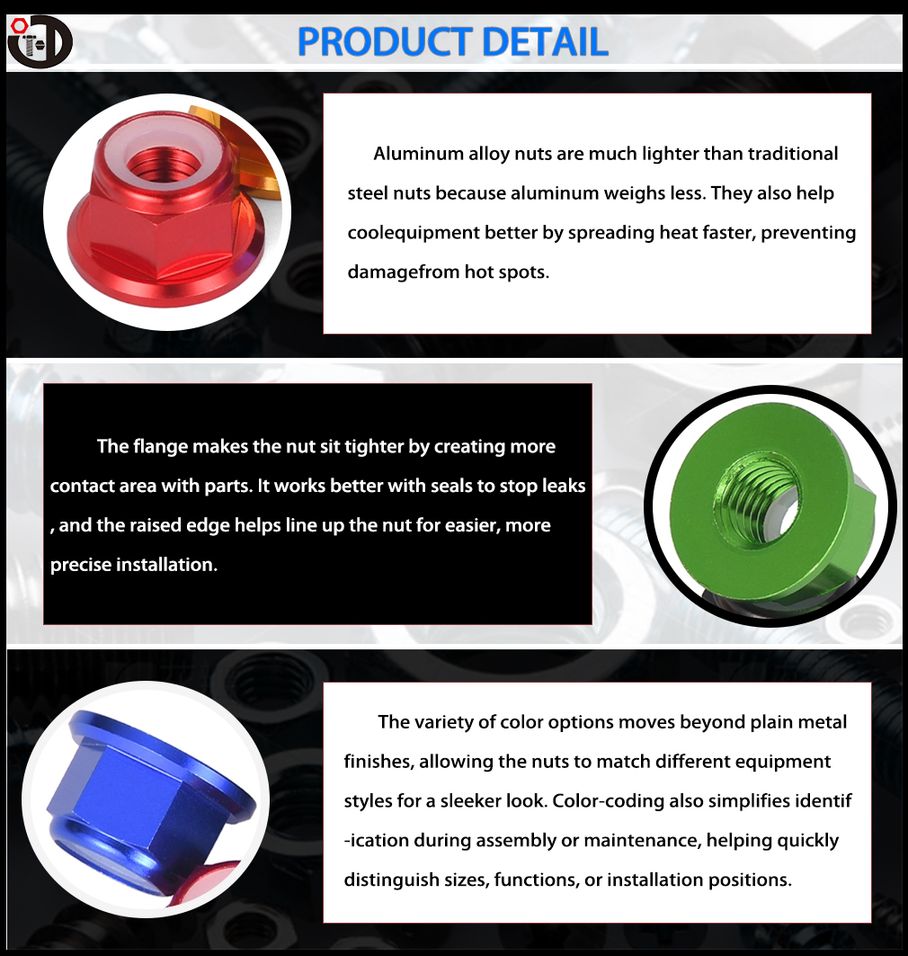 In vergelijking met gewone moer heeft de flensmoer een groter contactoppervlak tussen moer en verbonden onderdeel vanwege het grotere contactgebied, zodat deze stabieler is vastgemaakt. Wanneer toegepast in zware druk- of spanningsonderdelen, kan dit lokale stress voorkomen en schade veroorzaken, de betrouwbaarheid en de levensduur van de verbinding aanzienlijk verbeteren.
