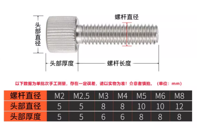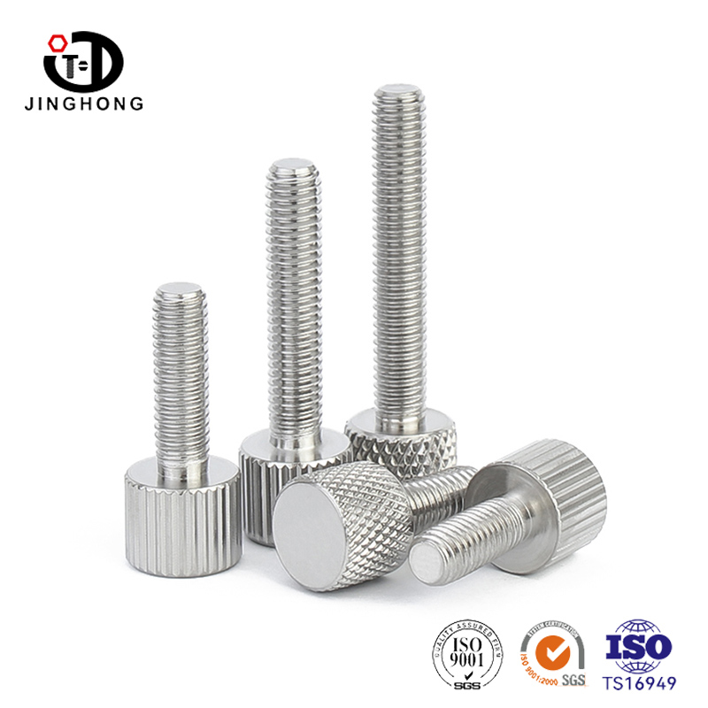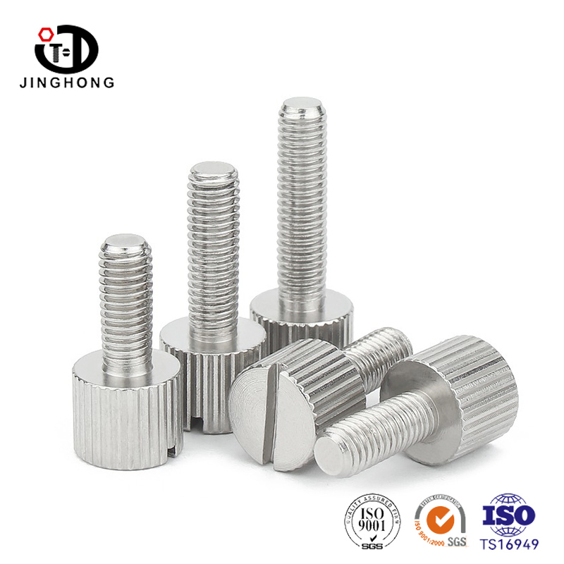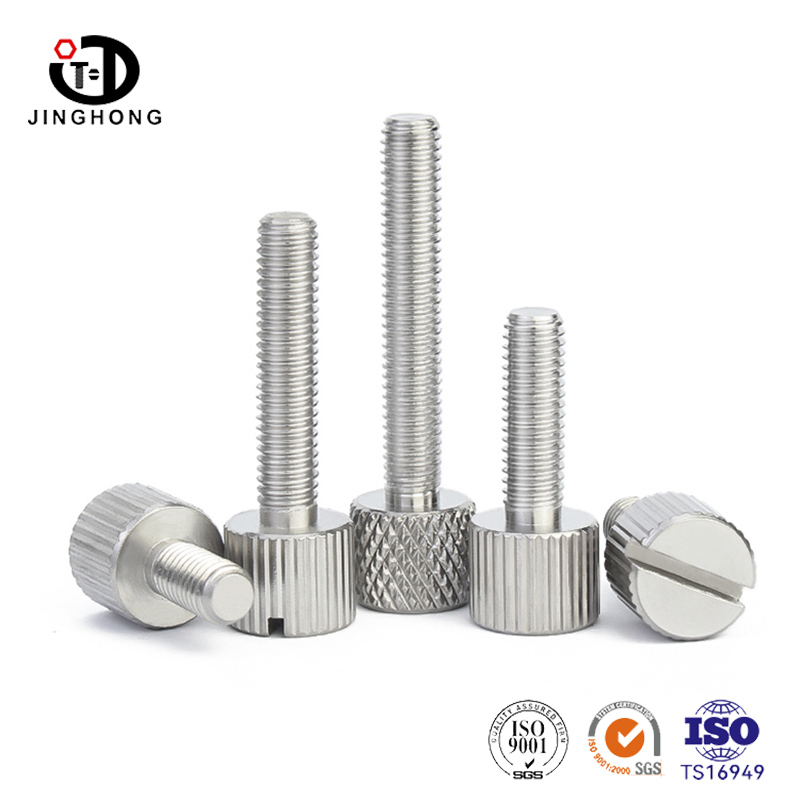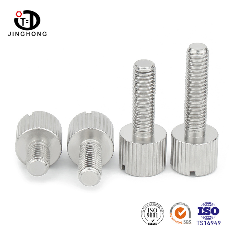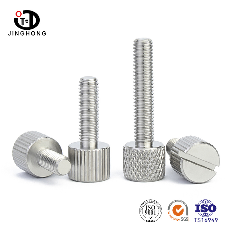 Gekartelde duimschroeven met platte kop zijn verkrijgbaar in roestvrij staal en andere materialen, met superieure weerstand tegen corrosie en hoge sterkte. De voordelen van de gekartelde duimschroef met platte kop zijn de kleine platte kop en de gekartelde ronde kop, de platte kop zit vlak en glad op het oppervlak, de gekartelde ronde kop kan gemakkelijk met de hand worden gedraaid om met de hand vast te draaien, de schroefdraad is ook nauwkeurig. Deze schroeven worden gewoonlijk elektronicaschroeven genoemd, maar worden ook gebruikt in machines, meubels en in vele andere toepassingen.