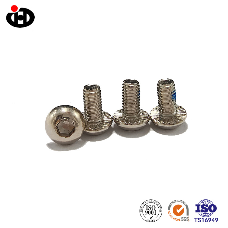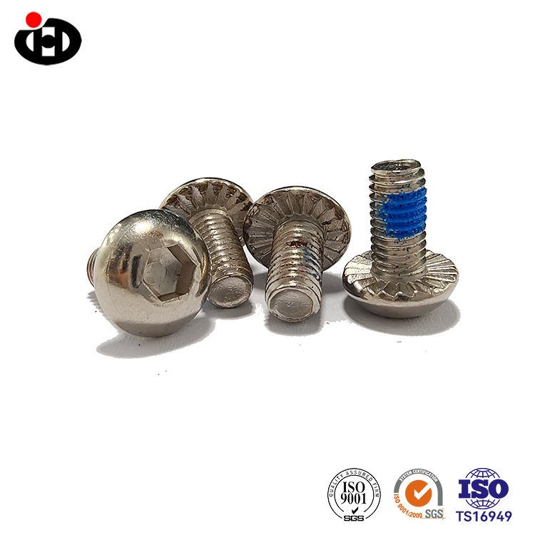 De hoogte van de halfcirkelvormige kop kan zich aanpassen aan smalle installatieruimtes of gebogen montagevereisten. De textuur van het tandpatroon op de schroefkop of staaf is een van de belangrijkste kenmerken. Deze tanden kunnen de wrijving tussen de schroef en het aangesloten onderdeel vergroten, waardoor de schroef in trillingen of dynamische belastingsomgevingen wordt losgelaten effectief te voorkomen. Of het nu wordt gebruikt voor componenten die bestand zijn tegen frequente trillingen in mechanische apparatuur of trillingsgebieden met een hoge intensiteit rond automobielmotoren, de getande structuur kan een betrouwbare anti-lose prestaties bieden en zorgen voor de stabiele werking van het systeem.