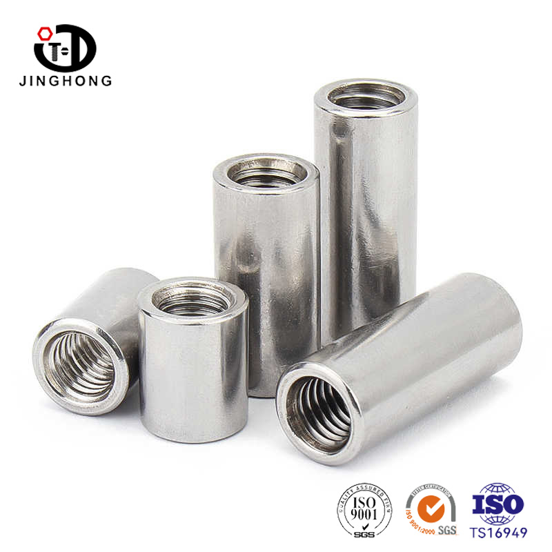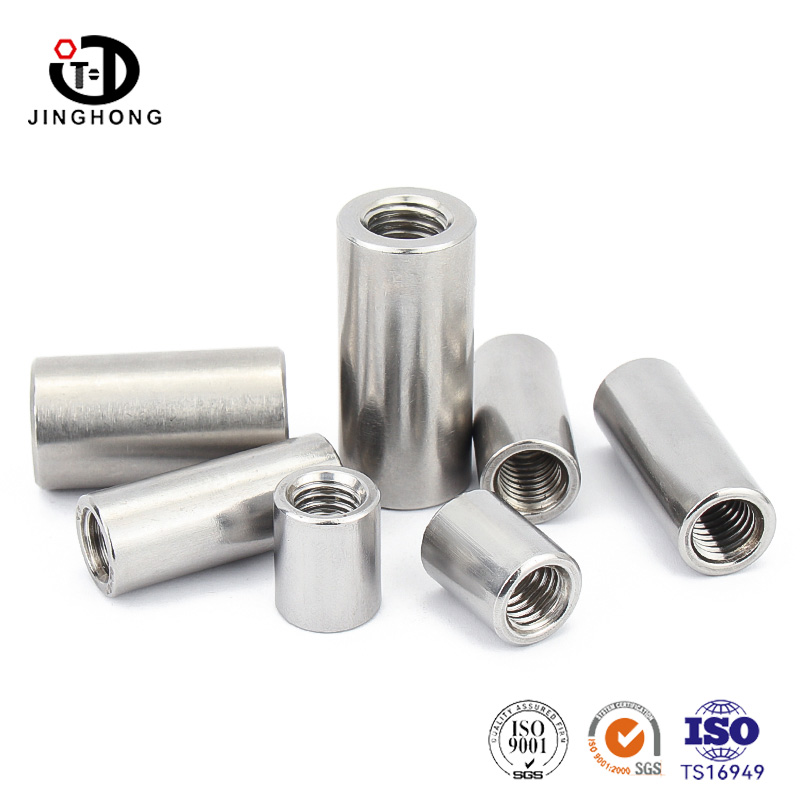 De ronde koppelingsmoer heeft een cilindrisch lichaam en is langer dan een gewone noot, waardoor een grotere strakkerkracht en een grotere afschuifweerstand zorgt. De cilindrische moer is voornamelijk gemaakt van legeringsstaal of roestvrij staalmateriaal, dat een nauwkeurige warmtebehandeling en oppervlaktebehandelingsproces heeft ondergaan, een hoge sterkte, hoge hardheid en uitstekende corrosieweerstand heeft en kan lange tijd verschillende harde omgevingen weerstaan.