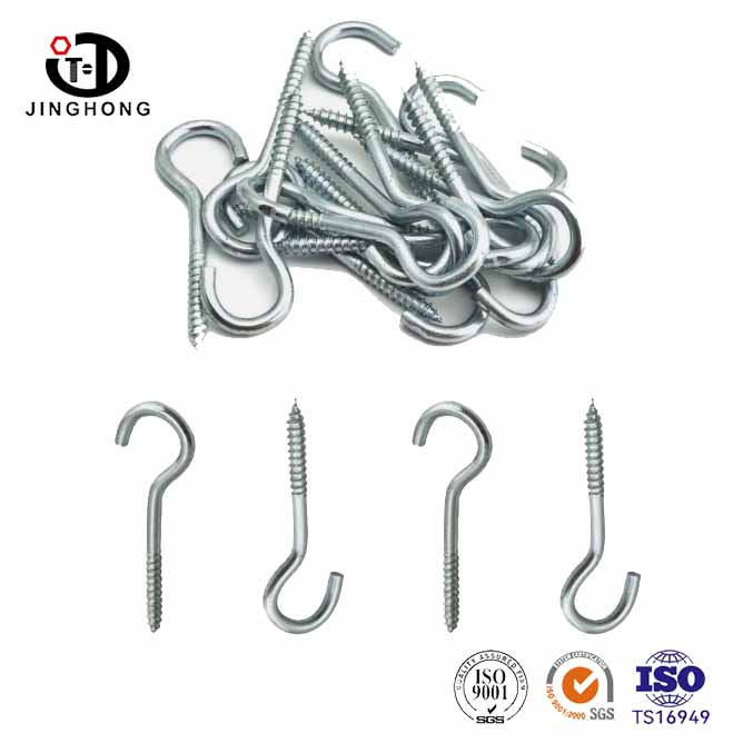 Ronde schroefhaken zelf tikkende haken hebben meestal een afgeronde kop en een scherpe zelftappende schroefgedeelte die gemakkelijk het materiaal kan doordringen en op zijn plaats kan houden, terwijl een haakgedeelte wordt geboden voor hangende items. Ronde schroefhaken zelf tikkende haken worden veel gebruikt in verschillende velden als een belangrijk hulpmiddel voor het verbinden en bevestigen van onderdelen.
