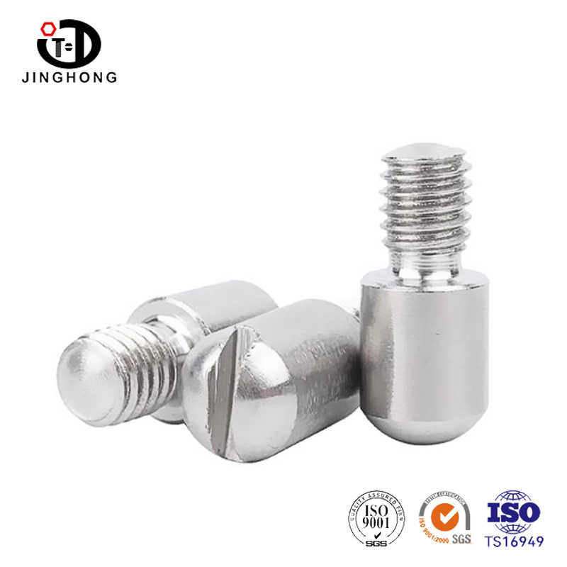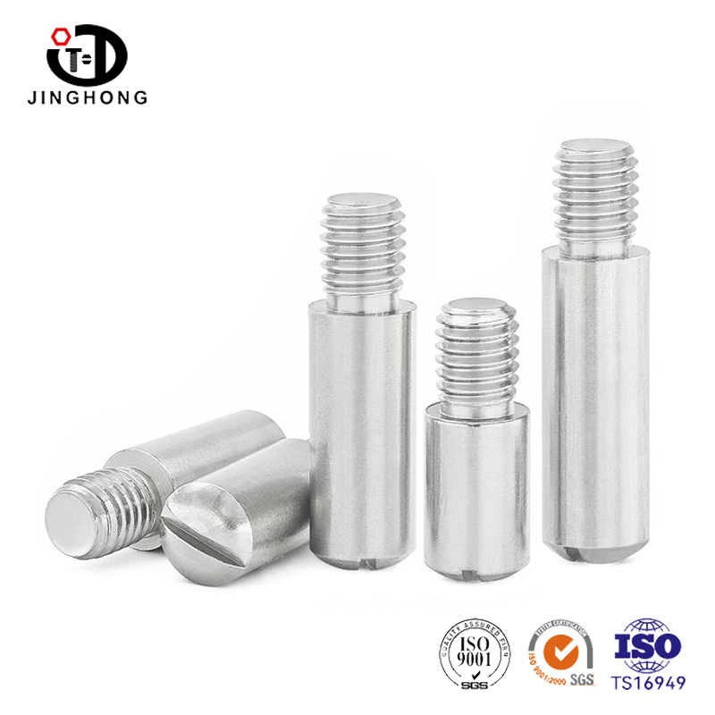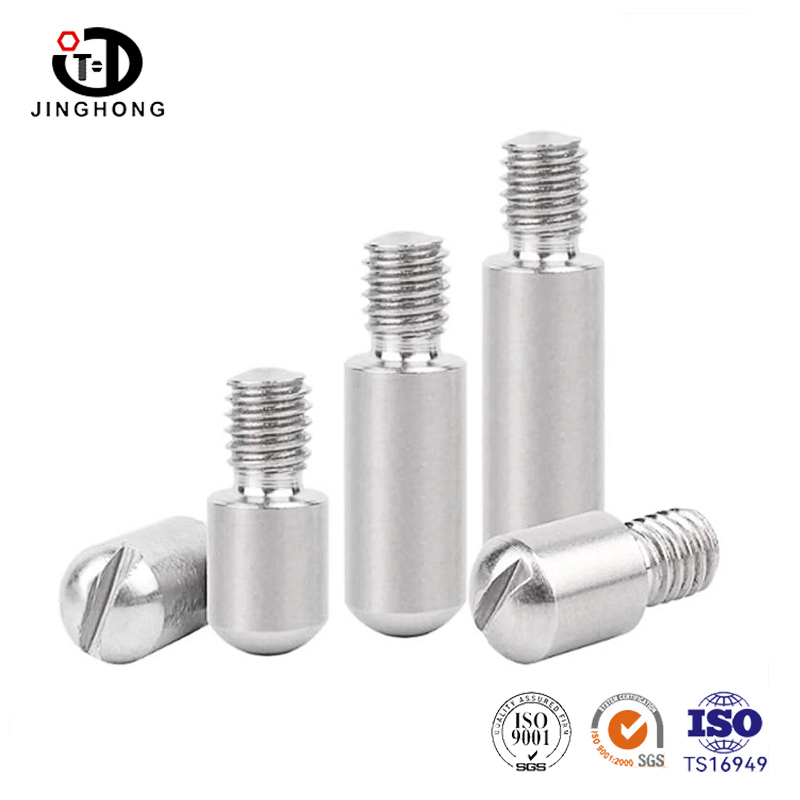 Slotted Step Pin is een soort functionele pin. Het unieke ontwerp met gleuf aan de boven- of onderkant van de pin maakt het gemakkelijk om deze te verwijderen en in te brengen met een schroevendraaier of ander gebruikelijk gereedschap. Het getrapte ontwerp op het pinlichaam maakt het mogelijk om verbinding te maken met onderdelen met verschillende diktes en geeft meer keuze voor de montage. De gleufvormige stappin is gemaakt van metalen materialen van de beste kwaliteit, heeft een hoge sterkte en hoge slijtvastheid.