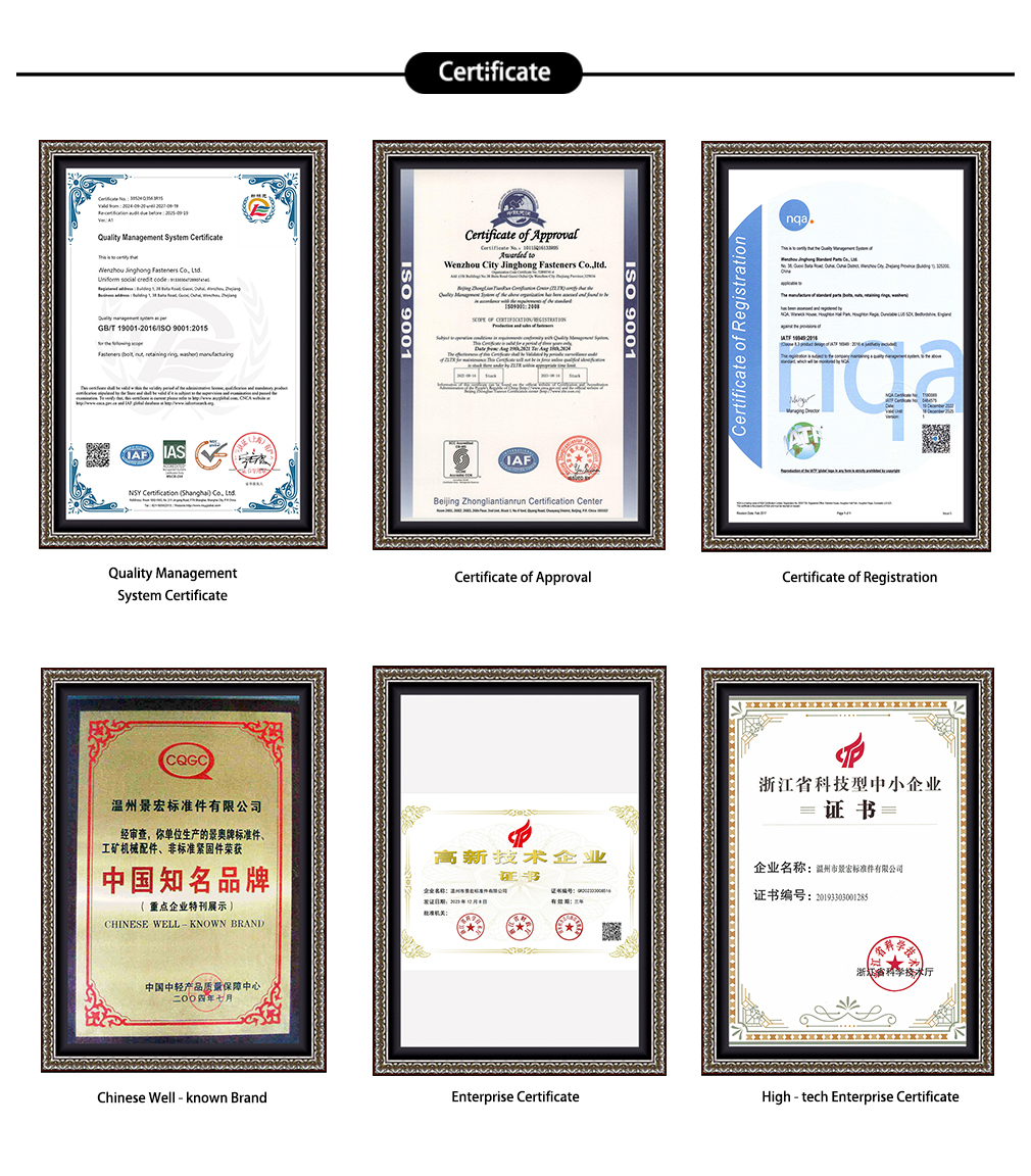 De missie van Jinghong is om op betrouwbare bevestigingsoplossingen te bieden voor de fabrikanten van de bouw, machines, stroom en zware apparatuur. We kiezen de beste materialen, hebben productieprocessen getest en rigoureuze kwaliteitscontroles toepassen om consistente prestaties in verschillende werkomstandigheden te garanderen. De brede productlijnen van Jinghong en speciale orderaanbiedingen zijn allemaal uitgebreid getest om te voldoen aan de wijdverbiedingsnormen voor veiligheid en prestaties.