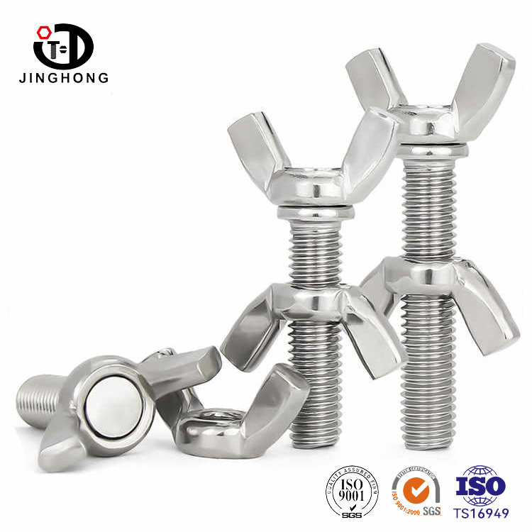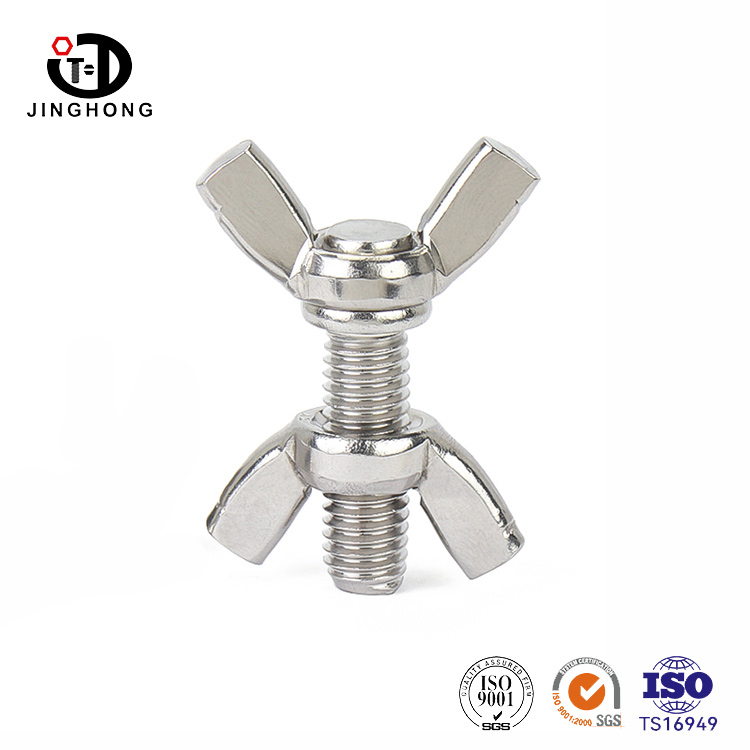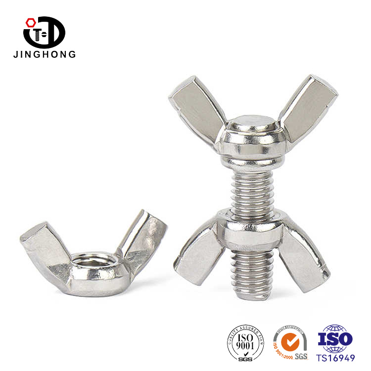 De vlinderbout neemt een biomimetisch ontwerp aan op basis van vloeistofmechanica, met een vleugelkromming die voldoet aan de natuurlijke greephoek van de duim en wijsvinger, waardoor het maximale koppel met één hand kan worden aangebracht. Het vleugeloppervlak is glad en zorgt voor stabiliteit in extreme omgevingen. Roestvrij staalmateriaal wordt voornamelijk gebruikt in scenario's met hoge vereisten voor corrosiviteit. Koolstofstaal is geschikt voor droge omgevingen binnenshuis. Galvaniserende behandeling kan roestweerstand bieden, terwijl het nikkelplatingproces de oppervlaktehardheid en slijtvastheid verder kan verbeteren. Jinghong neemt geïntegreerde stempel- en zeer nauwkeurige schimmels aan om de verbindingssterkte tussen de vleugelvormige uitsteeksels en de basis te waarborgen.